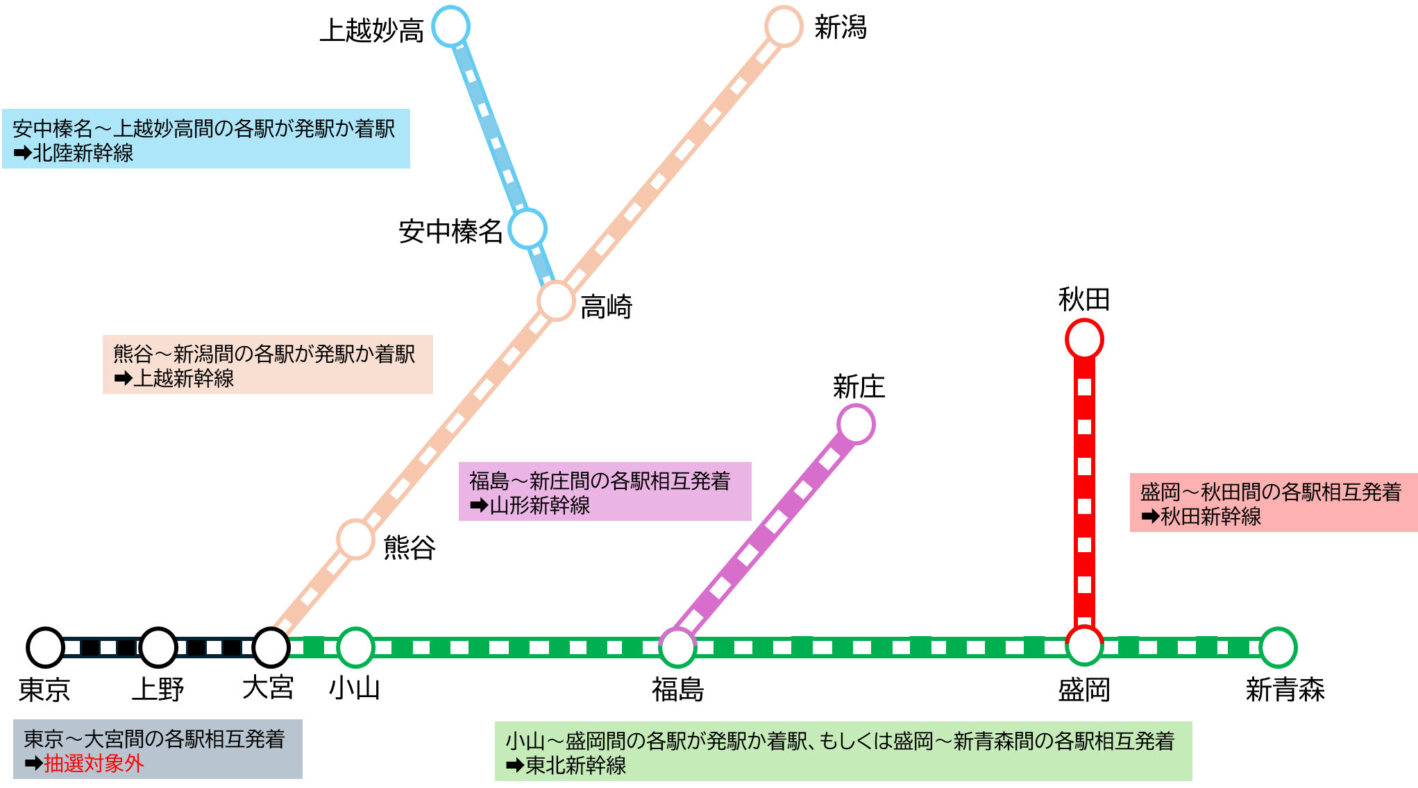 (例)上越新幹線を利用し当選→東北新幹線を利用していても東北新幹線は抽選対象外