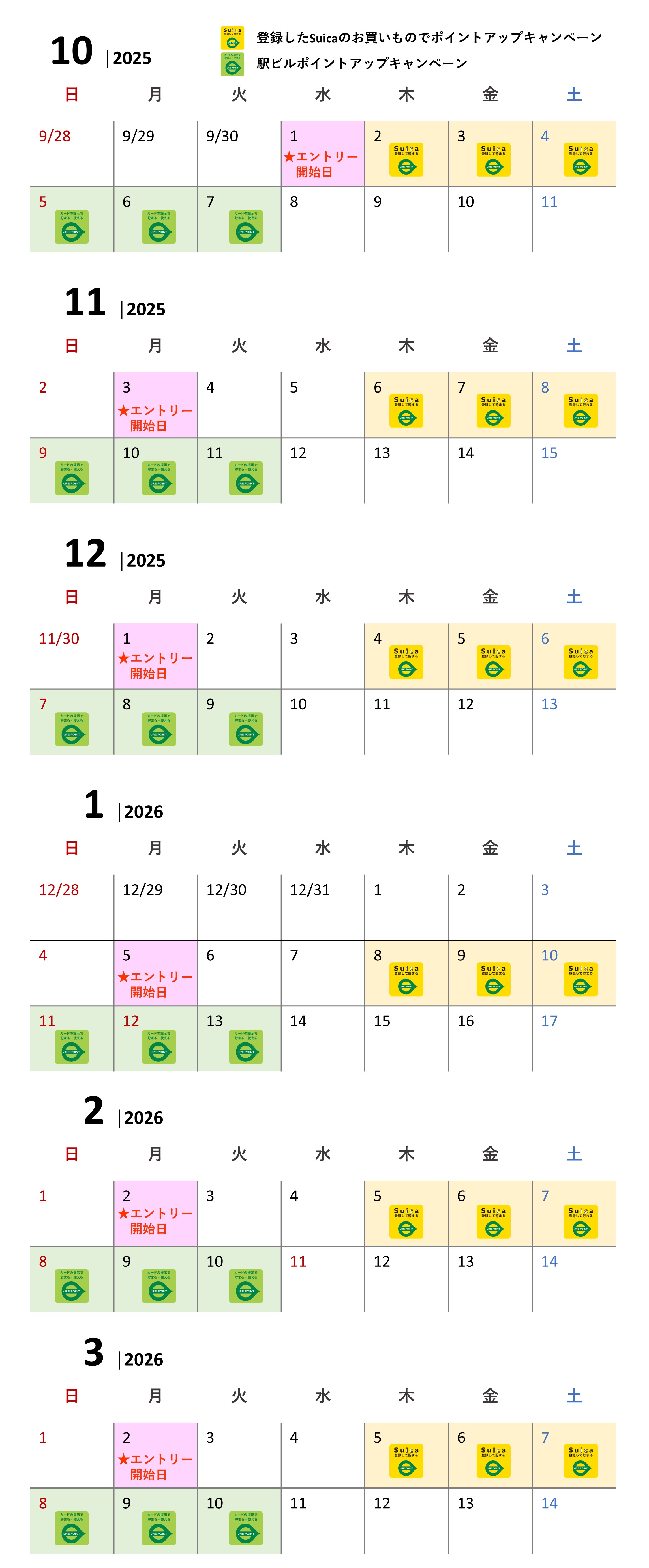 2026年3月までのスケジュールは下表よりご確認ください。