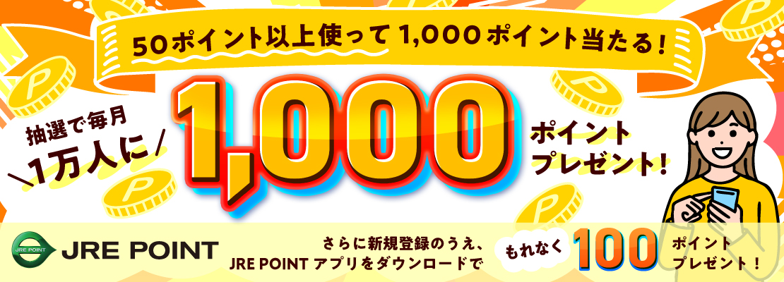 期間中にJRE POINTに新規登録をしてJRE POINTアプリをダウンロードのうえ初回ログインいただいた方