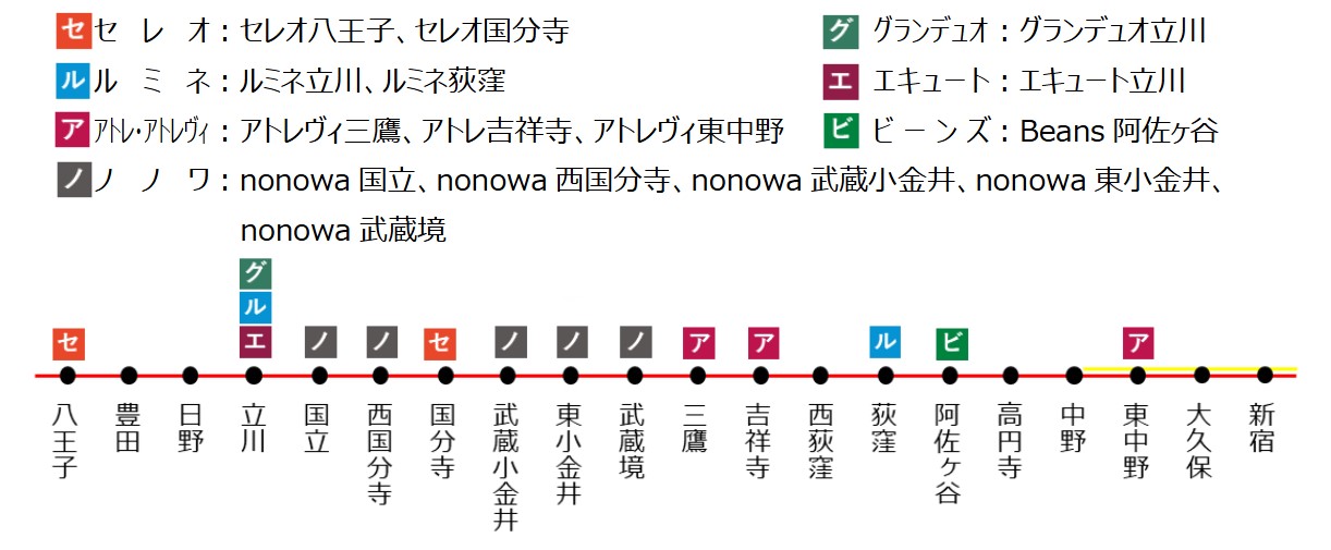 八王子駅―新宿駅発着のモバイルSuica定期券をお持ち、かつ中央線沿線の駅ビルをご利用いただいた方に、「モバイルSuicaグリーン券(八王子駅―新宿駅)1枚」と「どこかにビューーン!2,000ポイント引きクーポン1枚」をもれなくプレゼントします。
