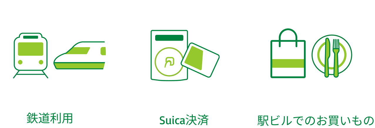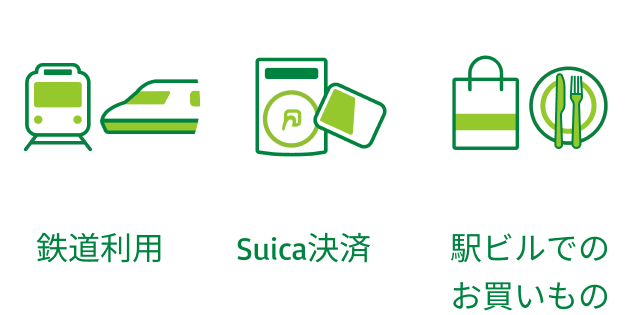 鉄道利用やSuica決済、駅ビルでのお買いものなどで貯まる・使える