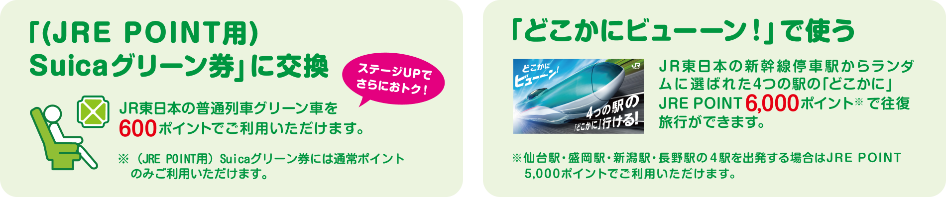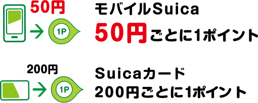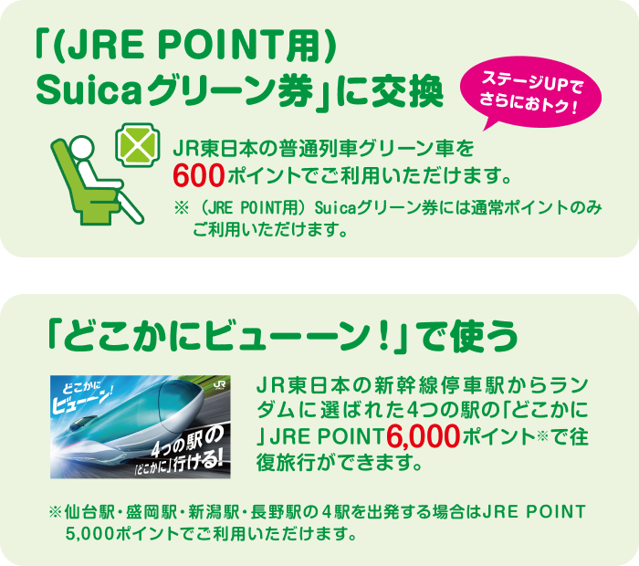 Suicaのチャージ残高で在来線に乗ったり、Suicaグリーン券を買うとポイントが貯まります。