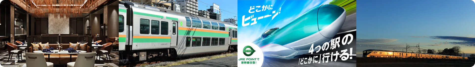 - ※対象は往復JRとJR東日本エリア(東北、北関東、首都圏、伊豆・箱根、甲信越)の宿泊施設または日帰り施設を組み合わせた商品となります。