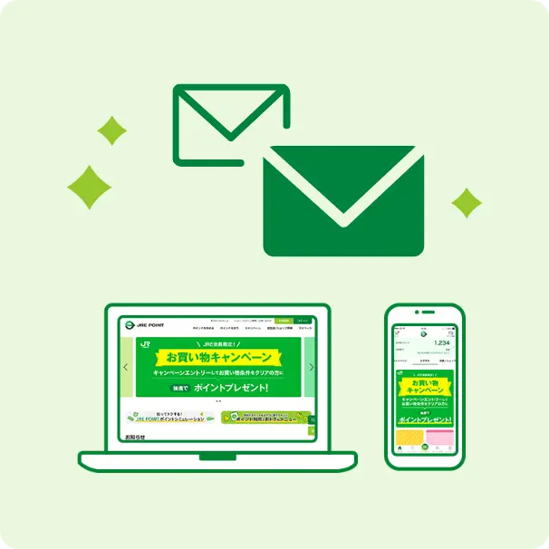 JRE POINT WEBサイトやアプリ内メッセージに配信されます